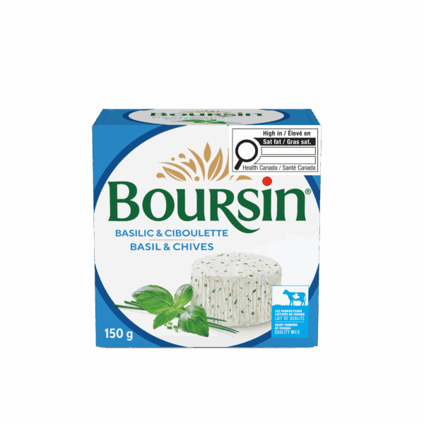 Boursin® Basilic & Ciboulette associe des herbes fraîches à la texture crémeuse et friable du fromage. Le basilic apporte une touche délicate, tandis que la ciboulette relève subtilement la recette. Ce fromage s’utilise facilement dans des feuilletés ou en amuse-gueules pour apporter fraîcheur et légèreté à vos préparations.