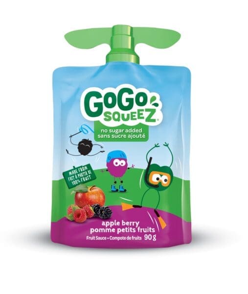 GoGo squeeZ® Pomme petits fruits, est faite de fruits à 100 % et est 100 % portable et amusante à manger. Peu importe où les enfants vont, ils peuvent toujours savourer une collation gourmande.