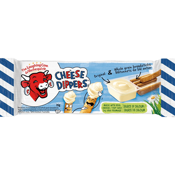 Cheese Dippers est un duo savoureux composé d’une trempette de fromage La Vache qui rit® onctueuse et de bâtonnets de blé entier croustillants. Cette collation prête à consommer, offerte en format individuel apprécié des enfants, séduit par son goût et sa praticité.