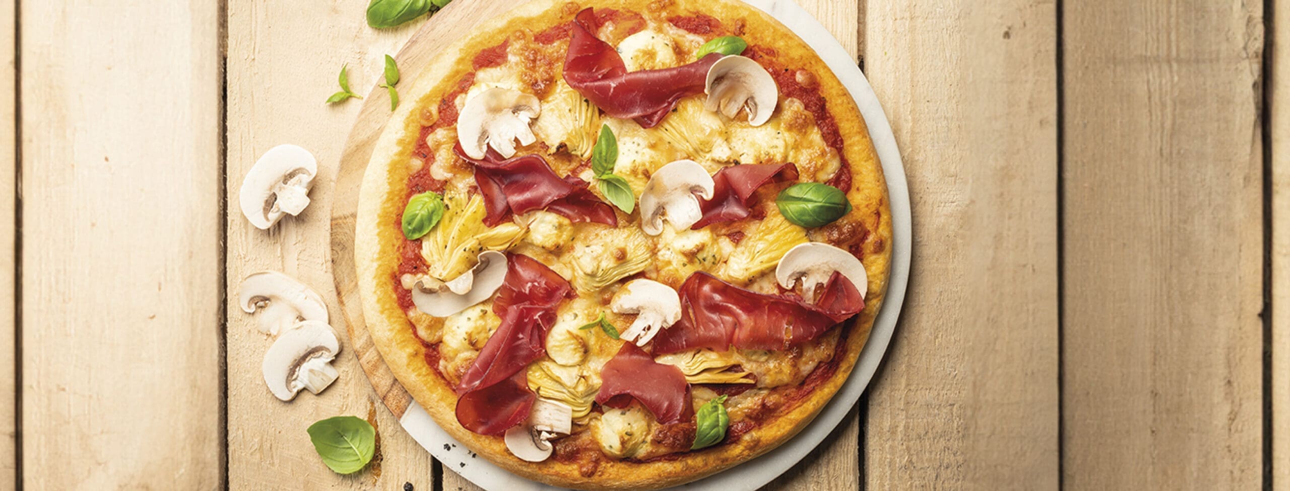 The addition of Boursin® Professional Frozen Dice Garlic & Fine Herbs gives a delightful touch of deliciousness and a harmonious blend of garlic and herbs to this pizza. The sweet and aromatic flavour of the air-dried Bresaola further enhances its taste, making this pizza a culinary delight.